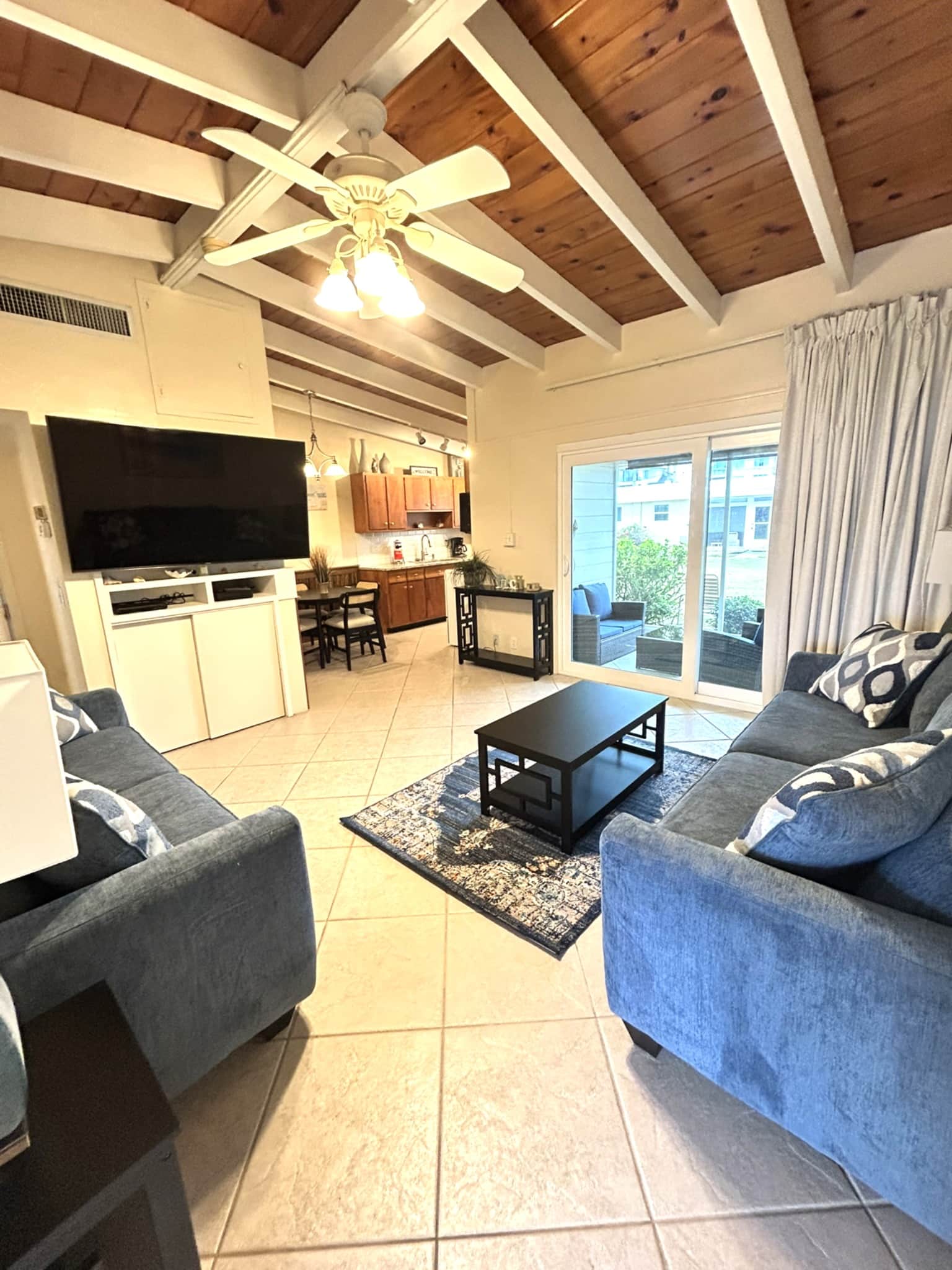 Inside, the condo is bright, clean, and thoughtfully furnished with everything needed for a stress-free stay, including a fully equipped kitchen, comfortable living area, and all the essentials to feel right at home. The bedroom provides a restful space to unwind, while the living room features a sleeper sofa, allowing the condo to comfortably accommodate up to four guests. Whether you are starting your morning with coffee or relaxing after a day in the sun, this space is designed for easy vacation living.